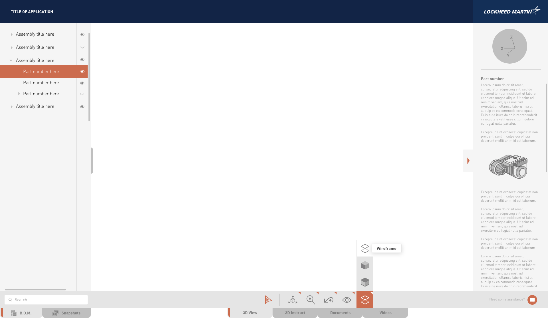 As the UI/UX designer for this internal Lockheed Martin project, I led the redesign of a 3D tool used to train maintenance personnel on complex mechanical systems. The application was built to display and animate raw CAD data, requiring an interface that could handle highly detailed models while remaining intuitive for non-engineering users. My design focused on clarity, ease of navigation, and efficient access to essential controls, ensuring that technicians could interact with animations and explore component-level information without confusion. The interface was stripped of unnecessary visual noise and restructured to support real-time interaction with 3D assemblies, improving both training speed and retention. This redesign helped transform a technical tool into a practical learning asset for Lockheed Martin’s maintenance workforce.